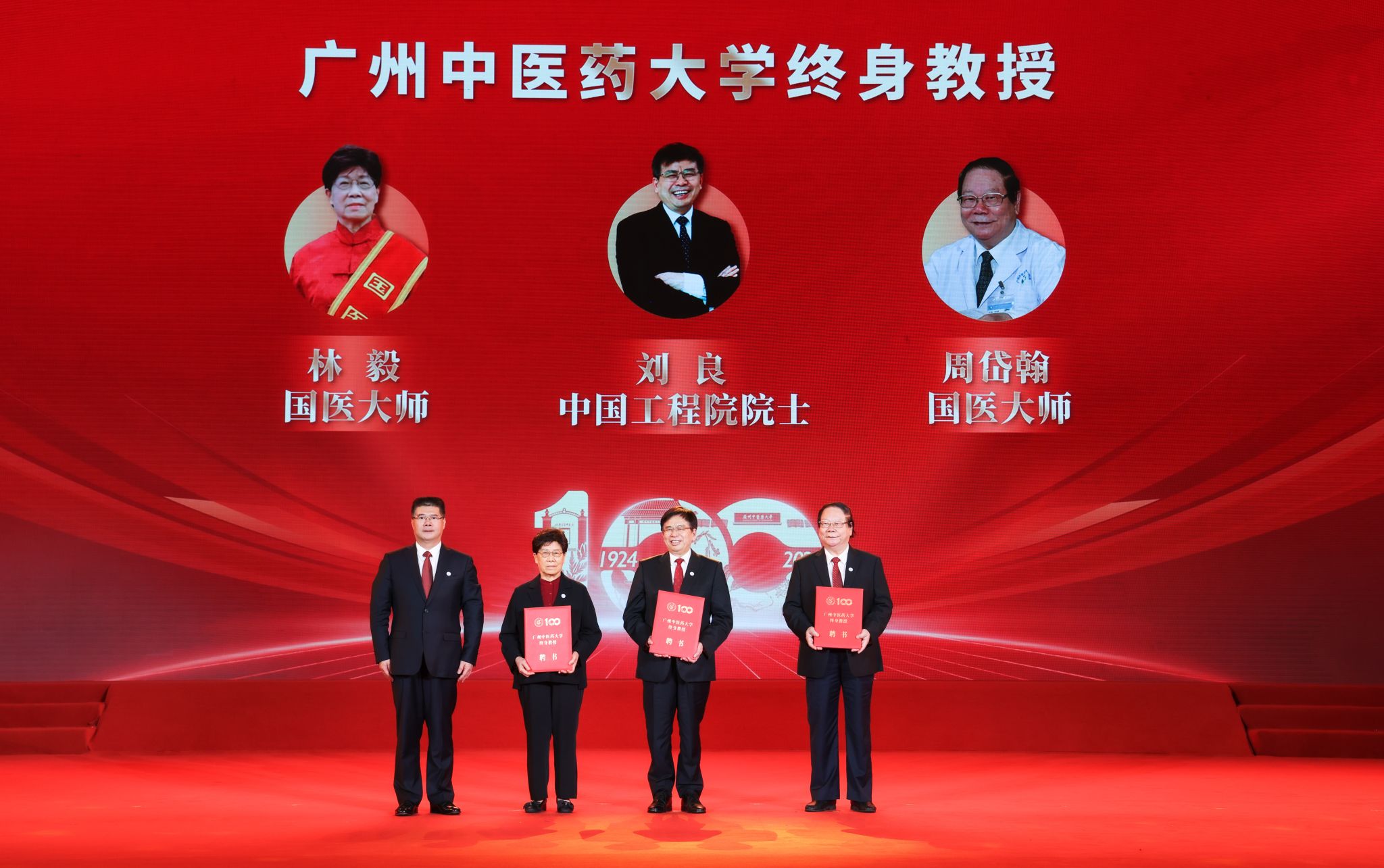 为大力弘扬教育家精神、医学家精神、科学家精神,加强新时代高素质专业化教师队伍建设,建校百年之际,学校特聘任中国工程院院士刘良、国医大师周岱翰教授、国医大师林毅教授三位为终身教授。