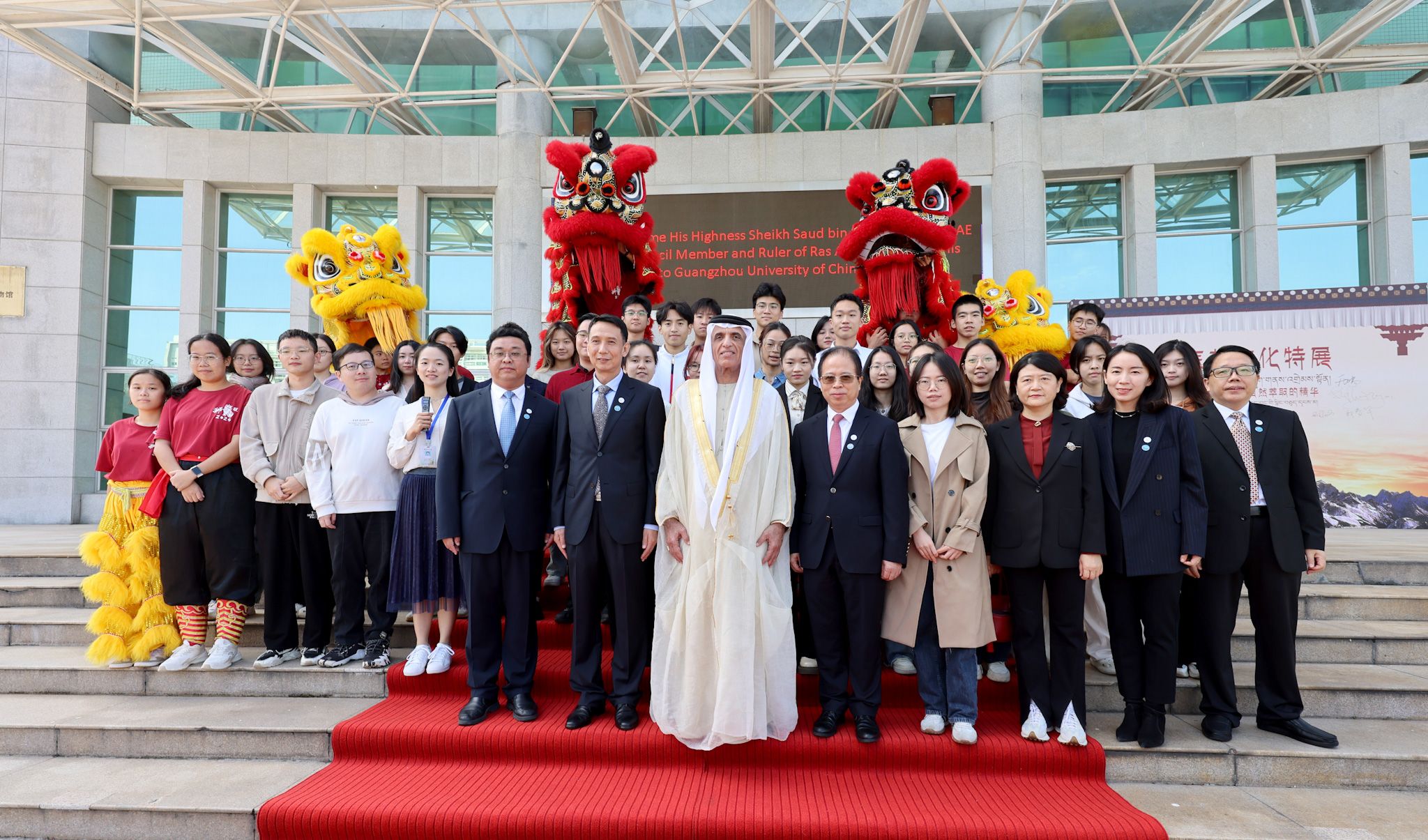 11月21日上午,阿联酋联邦最高委员会成员、哈伊马角酋长谢赫萨欧德·本·萨格尔·卡希米殿下及其代表团一行来访开云kaiyun官方网站并亲笔题词。广东省人民政府外事办公室副主任钱红洁陪同此次来访。开云kaiyun官方网站副校长刘中秋,党委常委、副校长郭鸿陪同出席。