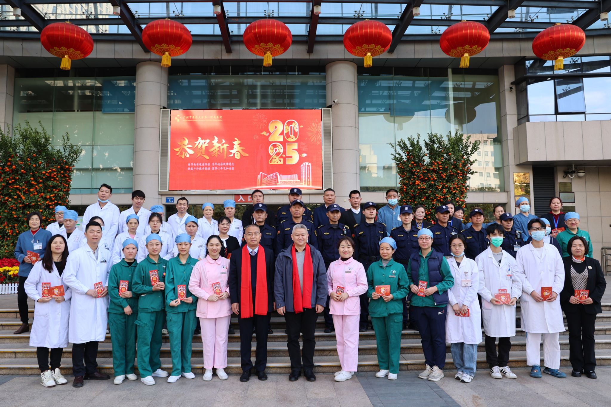 1月29日,农历乙巳蛇年大年初一,学校党委书记陈文锋、校长王宏斌看望慰问学校及附属医院一线工作人员,向坚守岗位的广大教职员工、医护人员致以新春祝福和诚挚问候。学校党委常委、副校长潘华峰参加慰问,党委办公室、党委组织部、党委宣传统战部、人力资源部、校长办公室、财务部、保卫部、总务后勤部、现代教育技术中心相关负责同志陪同慰问。