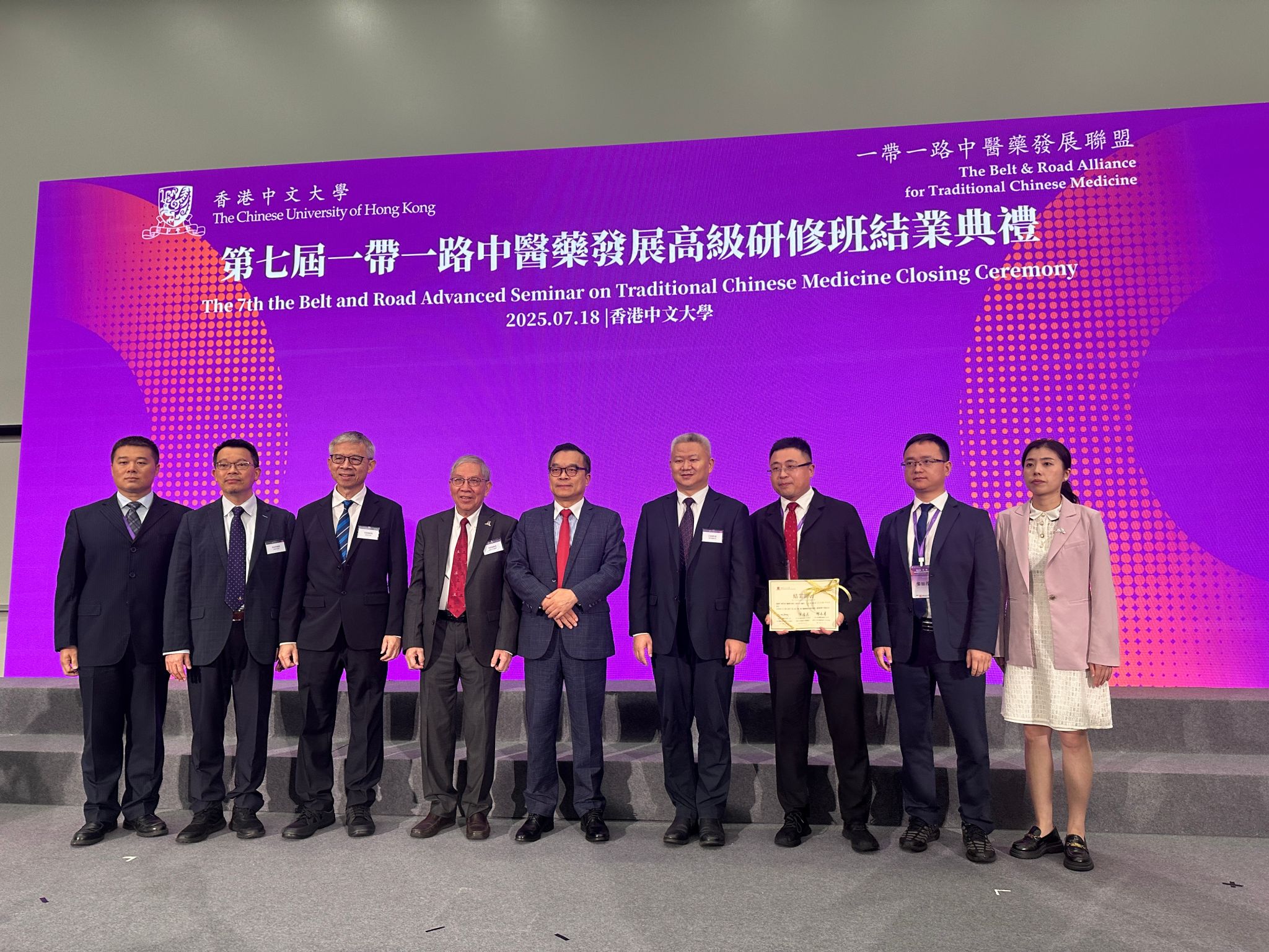 论坛结束后,王宏斌与我校参会学子合影,并出席“第七届一带一路中医药发展高级研修班结业典礼”,见证我校学员领取结业证书。