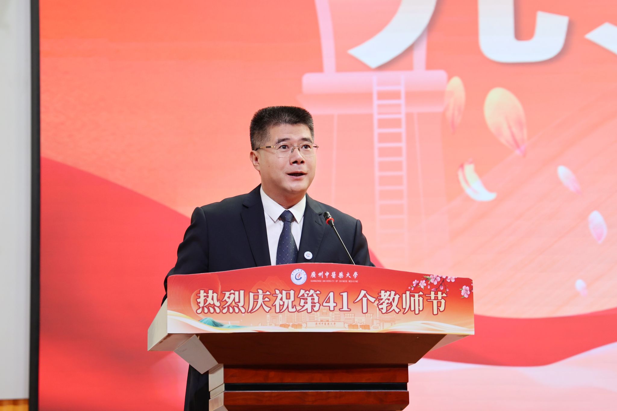 师德医德教师代表、全国卫生健康系统先进工作者、青年岐黄学者、国家级青年拔尖人才、第一临床医学院郜洁教授阐述了作为教育工作者和医务工作者的深刻体会,她自2004年9月考入广中医,毕业后留校工作至今,已有整整21年。她将始终牢记 "三尺讲台系国运,一生秉烛铸医魂",以德立身、以德立学、以德施教,做学生为学、为事、为人的示范。