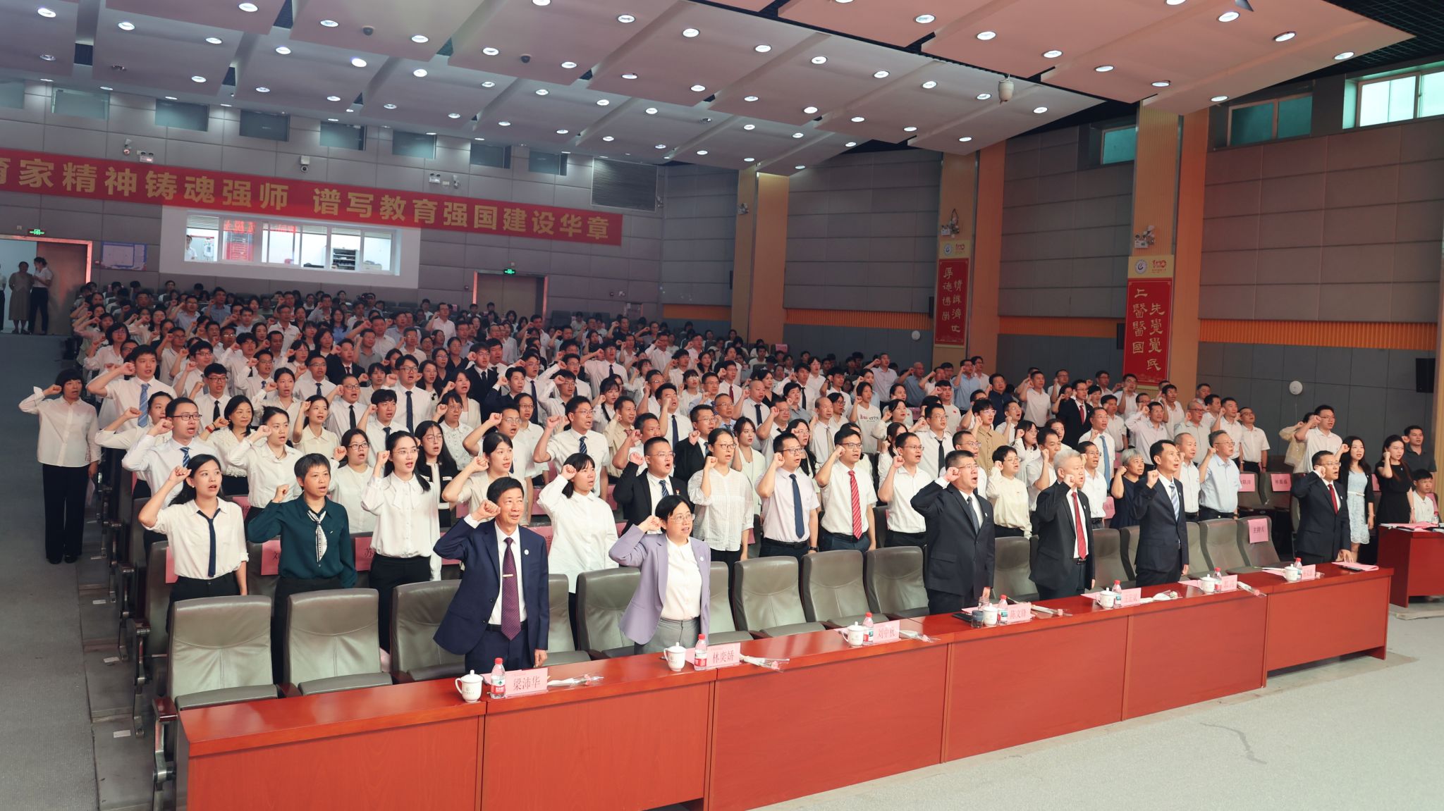 9月10日上午,开云kaiyun官方网站“2025年教师节庆祝大会暨师德建设主题教育月启动仪式”在大学城国际会议厅举行,活动主题为“以教育家精神铸魂强师,谱写教育强国建设华章”。学校领导、受表彰教师代表、荣休教师代表、2025年新入职教师代表、各教学科研教辅单位负责人、各党政管理部门负责人以及教研室主任、教职工代表、学生代表400余人齐聚一堂,共同庆祝第41个教师节。会议由学校党委常委、副校长杨荣源主持。