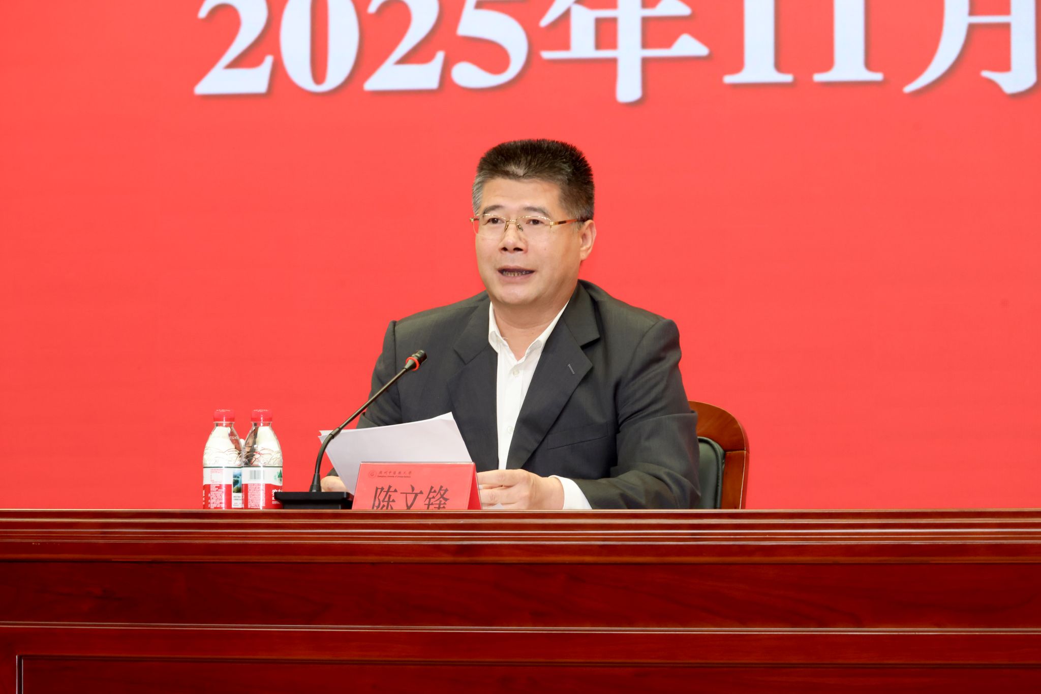 11月12日下午,党委理论学习中心组(扩大)学习会暨“先觉学堂”干部教育培训专题讲座第30讲在大学城校区国际会议厅召开。学校党委书记陈文锋主持会议并讲话。