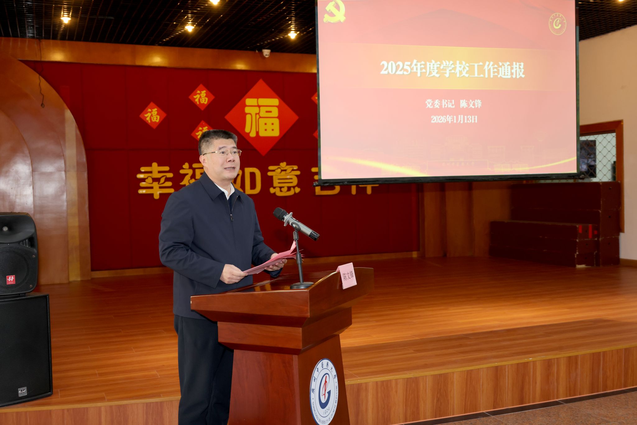 2026年1月13日上午,学校召开离退休教职工、退出岗位历届校领导2025年度工作情况通报会。学校党委书记陈文锋、校长王宏斌通报年度工作,王绵宁、冯新送、徐志伟、丘和明、陈英华、林培政、孙晓生、梁沛华等退出岗位校领导和300余名离退休教职工参加。通报会由学校党委常委、副校长史亚飞主持。