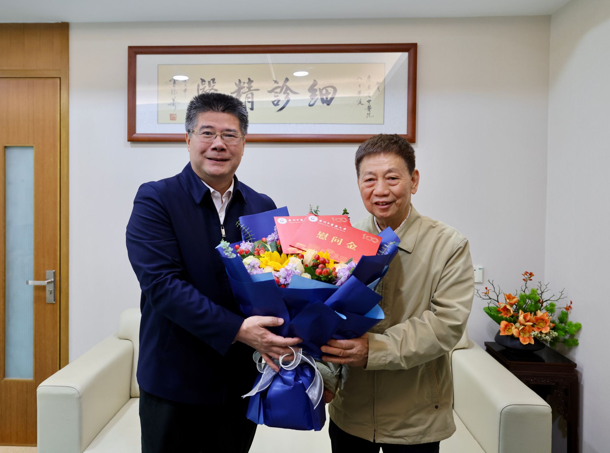 陈文锋带队在大学城校区,慰问了刘良院士,对他引领中医药科研攻关、推动学科发展的杰出贡献表示衷心感谢,并认真听取了他对学校科技创新、平台建设等方面的宝贵建议。