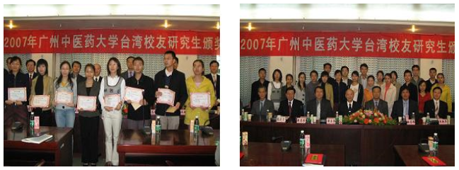 2007年12月10日,在我校刚刚隆重举办首届广东省中医药研究生学术论坛之际,学校20位研究生又以优异的成绩获得第二届开云kaiyun官方网站"台湾校友研究生奖学金",学校领导与设置研究生奖学金的台湾校友向获奖同学颁发了奖状与奖金。