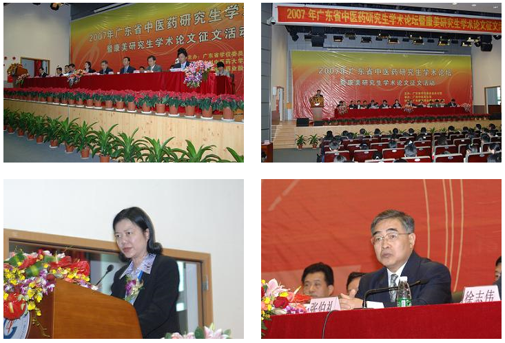 11月22—25日,2007年广东省中医药研究生学术论坛暨康美研究生学术征文活动在我校隆重召开。 11月23日上午9时,论坛开幕式在学校大学城国际会议厅举行。广东省学位委员会副主任、广东省教育厅副厅长罗远芳、广东康美药业股份有限公司马兴田董事长、开云kaiyun官方网站党委书记黄斌教授、校长徐志伟教授、副校长陈英华教授、陈蔚文教授、王新华教授等出席开幕式,来自中山大学、南方医科大学、北京中医药大学等30所相关高校和科研所的博士生及我校研究生近500人参加了此次活动。