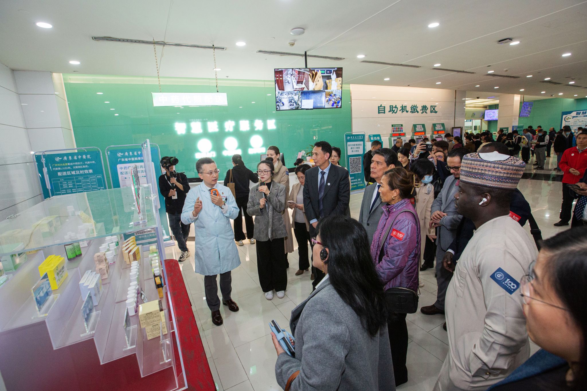 活动中,来宾们一同聆听中医药文化养生讲座,并获赠张忠德教授主编的《时节养生—中国人的健康智慧》一书,深入了解中医药“顺应天时,天人合一”的养生之道,感悟中医药文化的厚重底蕴和博大智慧。来宾们还实地参观了医院的智慧药房、传统疗法科、康复大厅等部门,体会现代技术赋能下传统医学的数字化融合发展。
