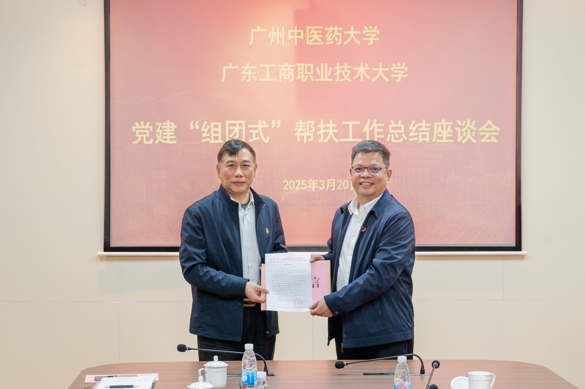 3月20日,学校党建“组团式”帮扶广东工商职业技术大学工作总结座谈会在该校星湖校区召开。学校党委副书记邱亚洪,广东工商职业技术大学党委书记丁勇、党委副书记卢景值出席座谈会。