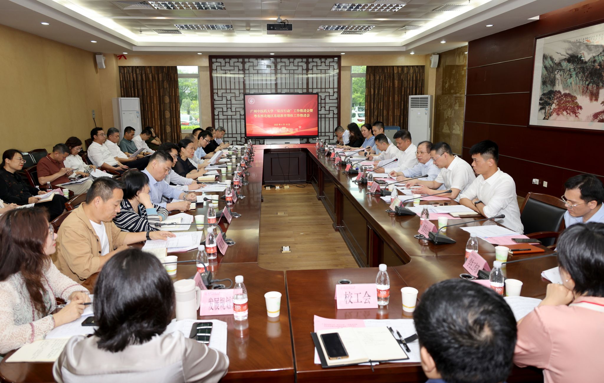 党委组织部、教务部分别作了工作文件介绍及下一阶段工作安排,学校“双百行动”驻清远市佛冈县、云浮市云安区服务队分别解读了2025年校地工作重点任务。