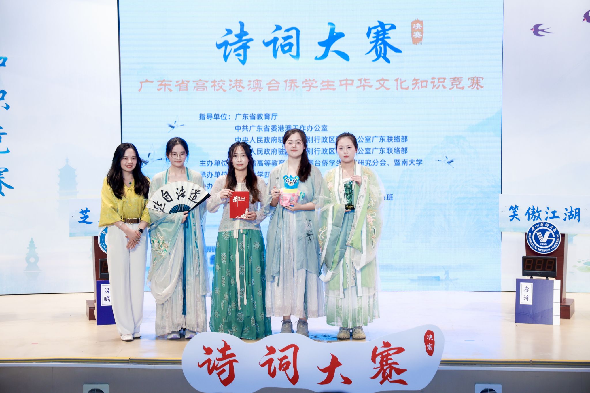 本次竞赛分为线上初赛与线下决赛两个阶段。初赛阶段,四名香港学子凭借扎实的诗词功底和丰富的文化知识储备,在众多选手中成功晋级。决赛现场,来自广东省六支高校港澳台侨学子队伍展开巅峰对决。我校代表队以“岐黄为根,文化为翼”为精神内核,沉稳作答、发挥出色,荣获二等奖。