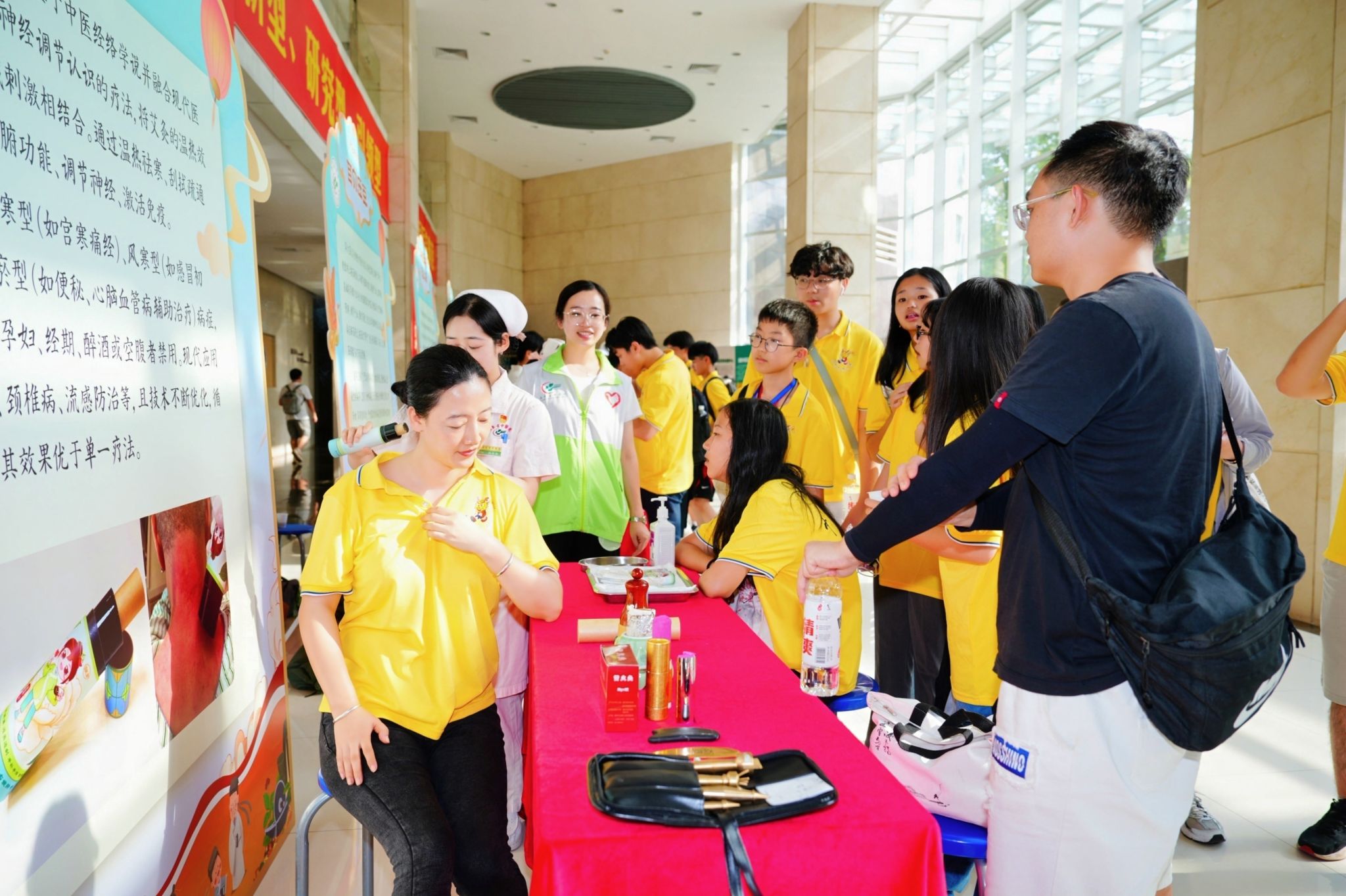体验的第二站设在我校第二附属医院(广东省中医院)大学城医院。这里举办了别开生面的“中医药文化嘉年华”。营员们积极参与了调和五脏的“健儿操”学习,参观了中医特色疗法(如针灸、推拿、艾灸等)展示,进行了中草药的辨识互动,品尝了养生中草药茶饮,并了解了脊柱养护等中医养生知识。活动现场气氛热烈,营员们通过亲身参与,深刻体会到中医药在预防保健和治疗康复中的重要作用。