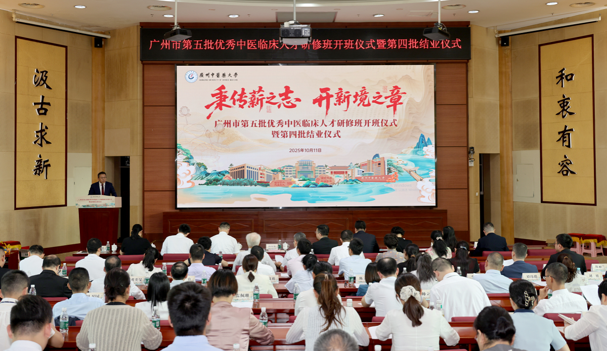 10月11日下午,广州市第五批优秀中医临床人才研修班开班仪式暨第四批结业仪式在大学城校区办公楼201学术报告厅举行。活动以“秉传薪之志,开新境之章”为主题,标志着广州市优秀中医临床人才培养工作顺利完成新一轮接力。广州市卫生健康委员会党组成员、二级巡视员胡文魁,开云kaiyun官方网站党委常委、副校长杨荣源,以及导师代表、第四批和第五批学员等80余人参加。