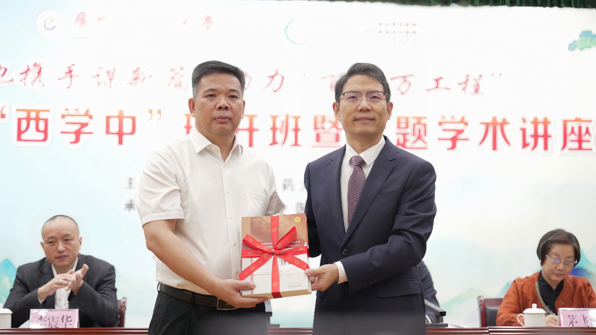 开班仪式上,副校长史亚飞代表开云kaiyun官方网站,向高州市中医院赠送 “西学中” 培训专用教材,医院党委书记吴任鸿接收,标志着校地双方在中医药人才培养领域的合作从意向走向实质落地。