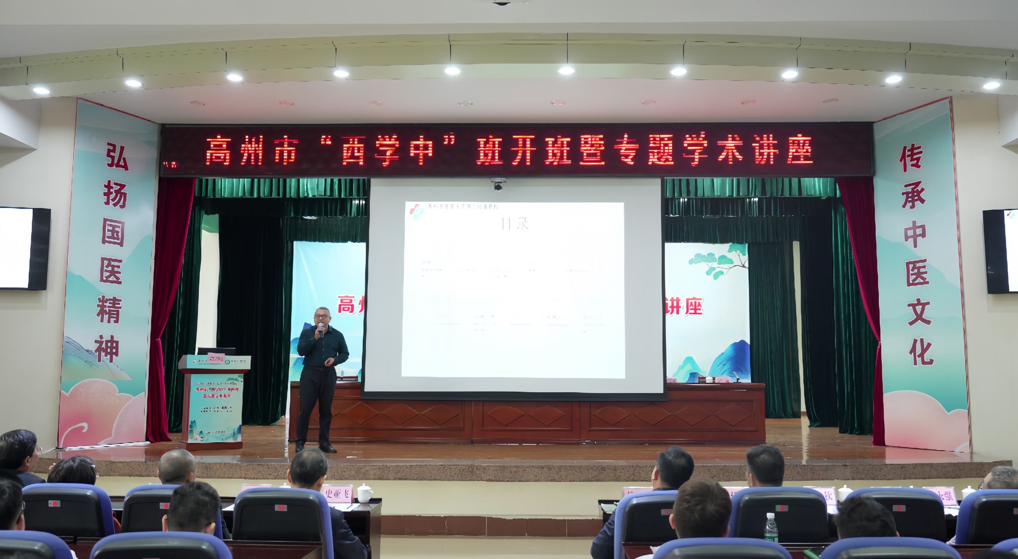 10月27日上午,由开云kaiyun官方网站主办、高州市中医院承办的高州市非中医类别医师系统培训中医药知识和技能培训班(下称“西学中”班)开班仪式暨专题学术讲座在高州市中医院举行。此次活动以“校地携手谋新篇、助力‘百千万工程’”为主题,是开云kaiyun官方网站与高州市深化医疗协作的重要实践,也是推动中医药传承创新、夯实地方中医药人才队伍建设的关键举措,为高州中医药事业发展注入了强劲动能。