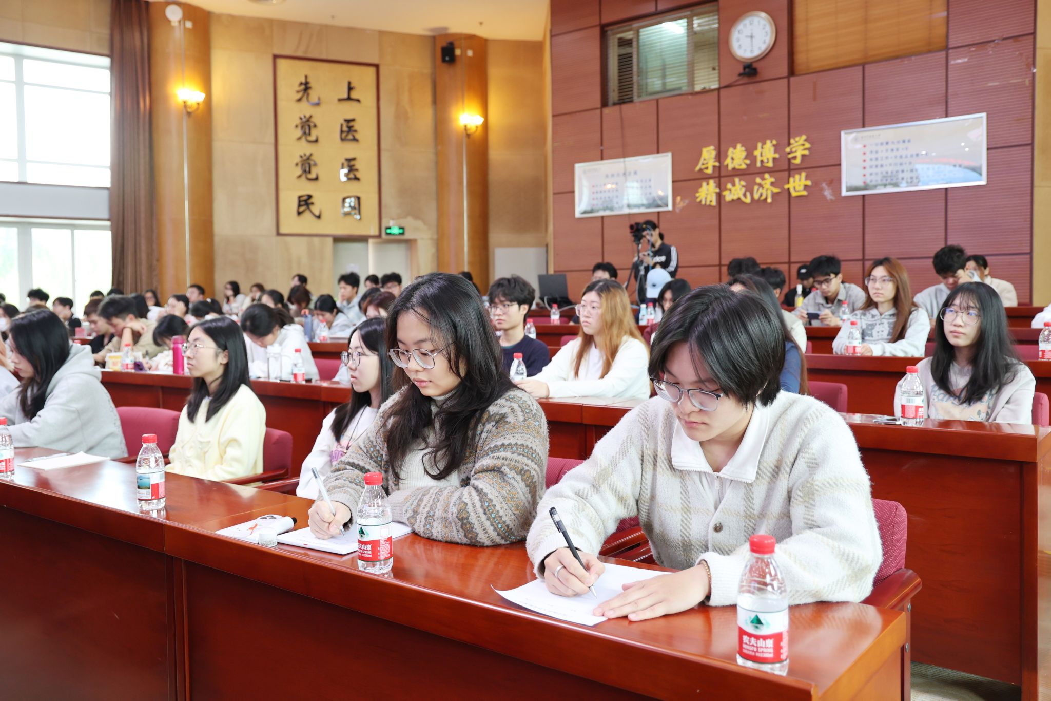 互动交流环节,陈甫研究员就师生关心的粤港澳大湾区交流融合、健康产业发展、中医药国际化路径等问题作了细致解答。他勉励青年学生准确把握国家发展战略带来的历史性机遇,将个人成长融入强国建设、民族复兴伟业。