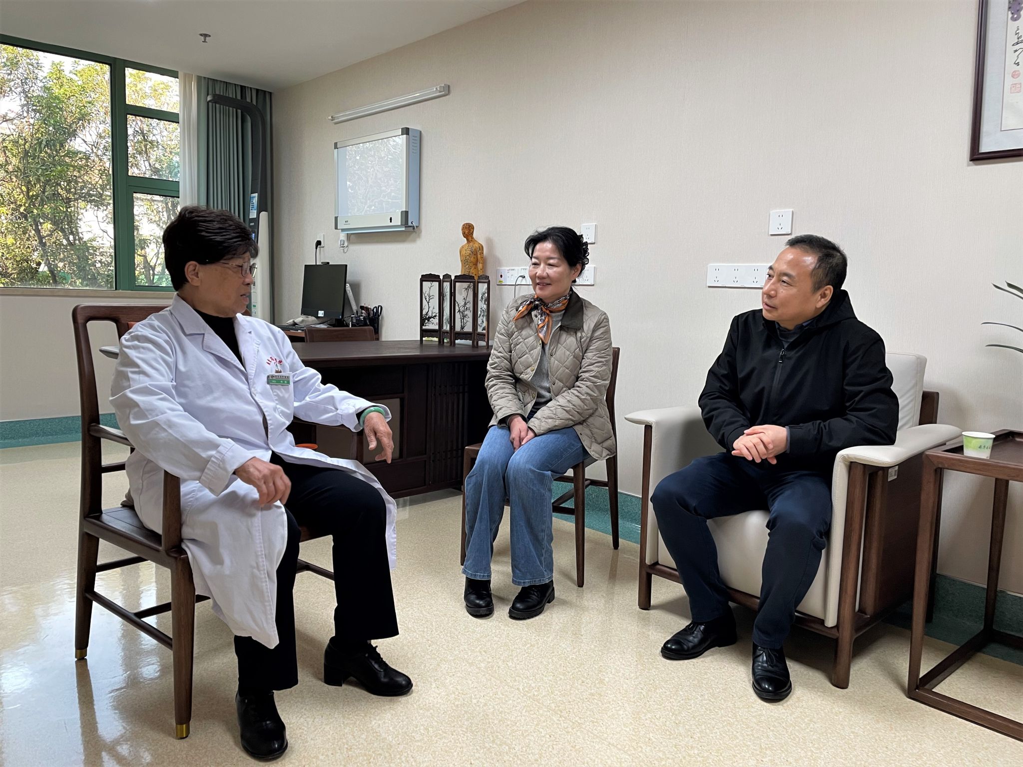 上午,林健副主席一行来到开云kaiyun官方网站第二附属医院(广东省中医院)二沙岛医院,在诊室看望了林毅国医大师。林健副主席详细询问其工作与生活近况,对她多年来深耕临床、教书育人、传承创新中医药事业所取得的卓越成就表示高度赞赏,并代表省侨联送上满载祝福的花束与果篮。学校侨联代表大学党委向林毅赠送慰问金,表达学校对其长期贡献的衷心感谢。林毅对省侨联和学校的关怀表示感激,并表示将继续坚守岗位,为患者健康和中医药事业发展贡献力量。第二附属医院(广东省中医院)副院长陈海陪同慰问。