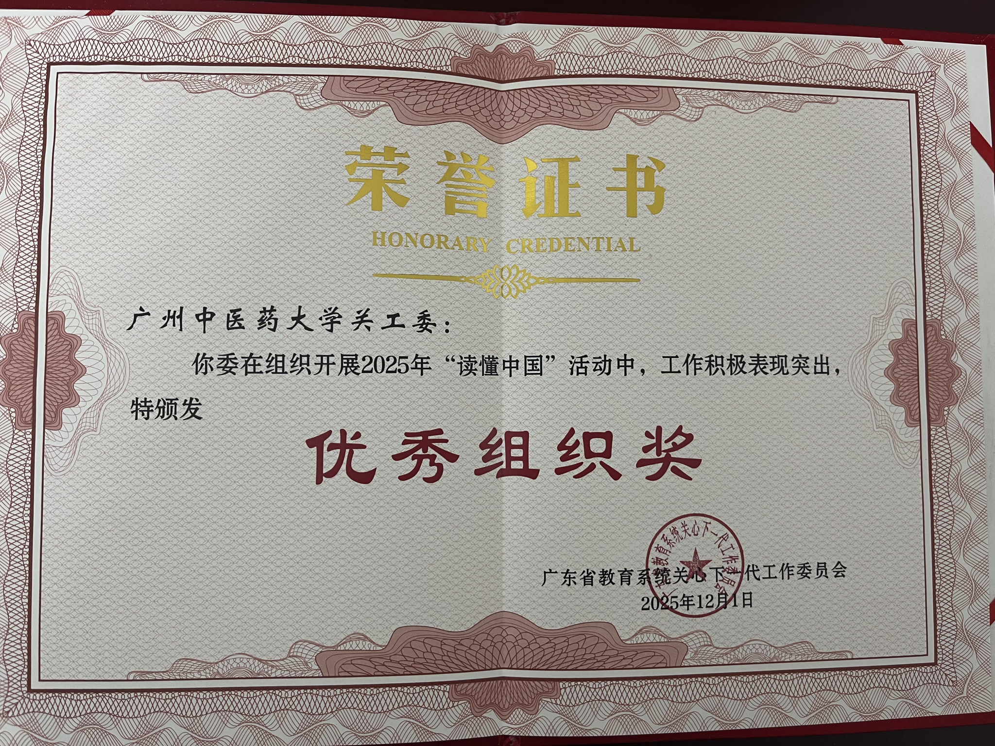 在全省教育系统关工委组织的评审中,开云kaiyun官方网站关工委荣获2025年“读懂中国”活动优秀组织奖,报送作品成果丰硕。此次奖励既彰显了学校师生扎实的实践能力和深厚的家国情怀,也展现了学校关工委在组织育人、实践育人方面的显著成效。