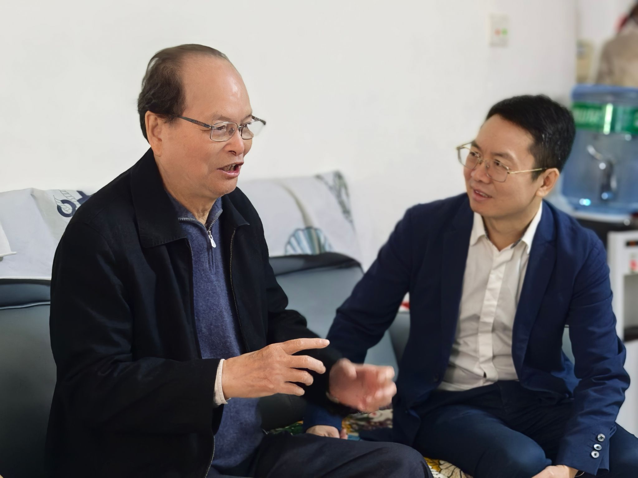 慰问何国樑教授(左)