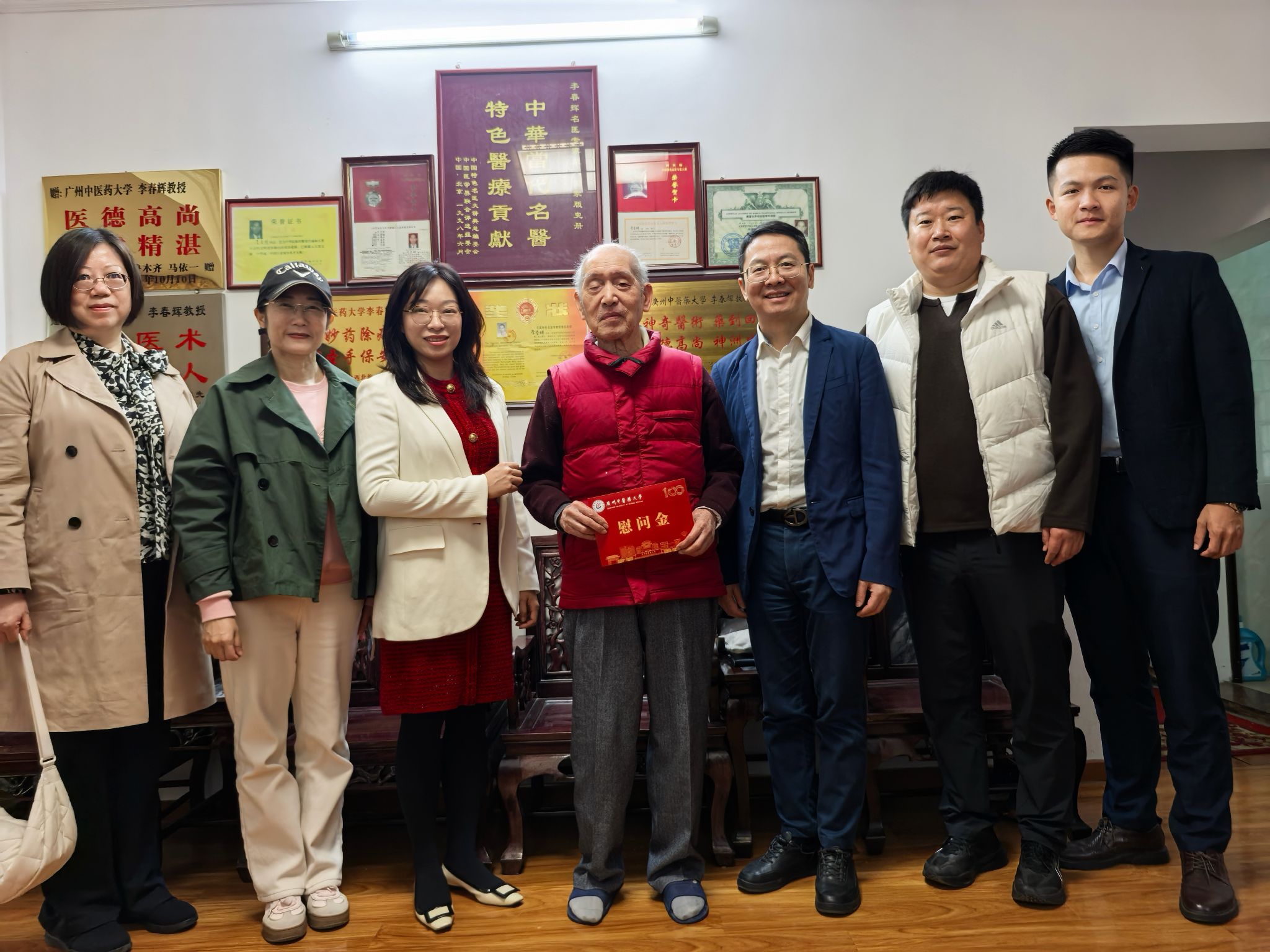 慰问李春辉教授(左四)