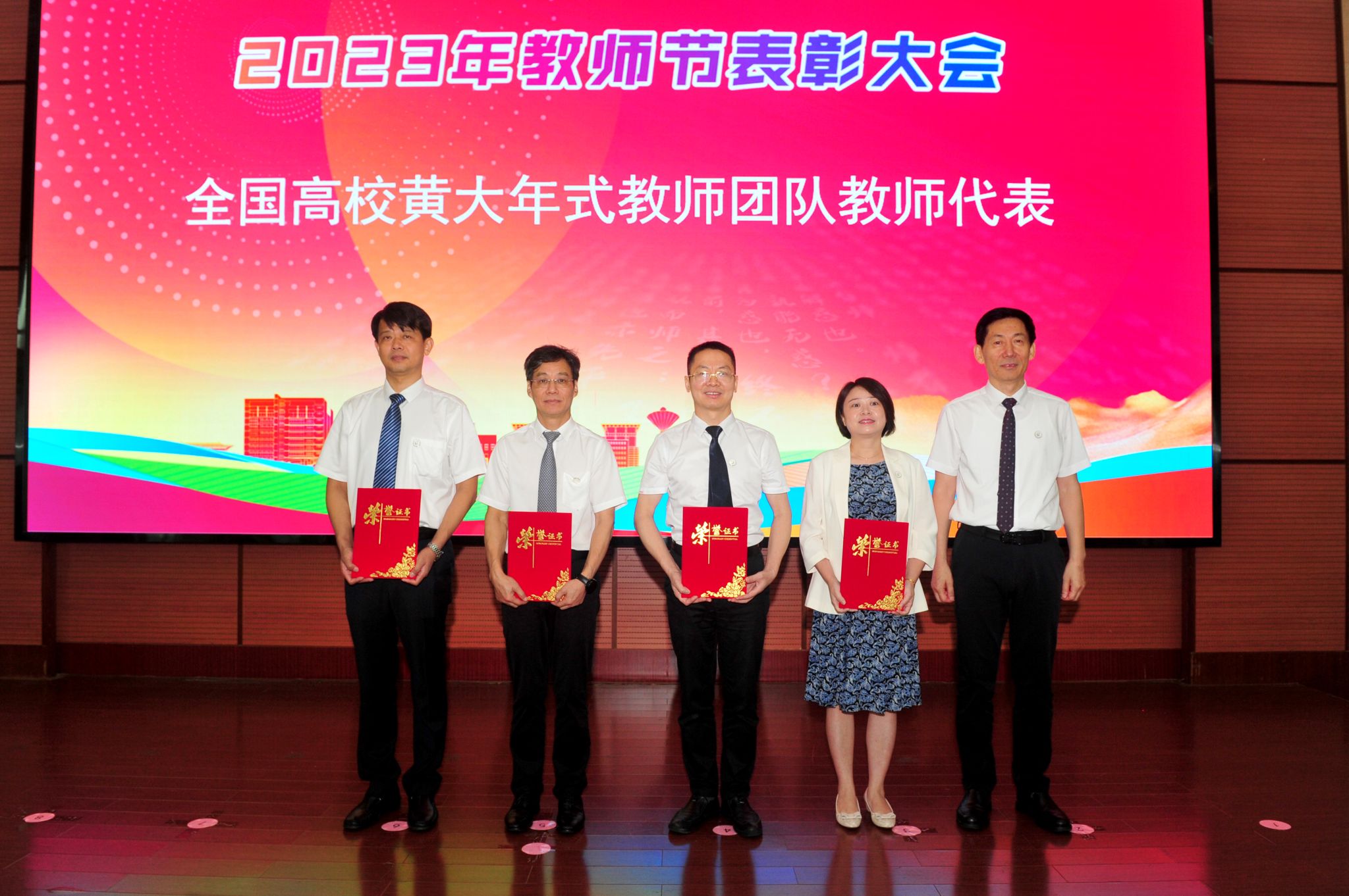 校长王伟(右一)为全国高校黄大年式教师团队教师代表颁发证书