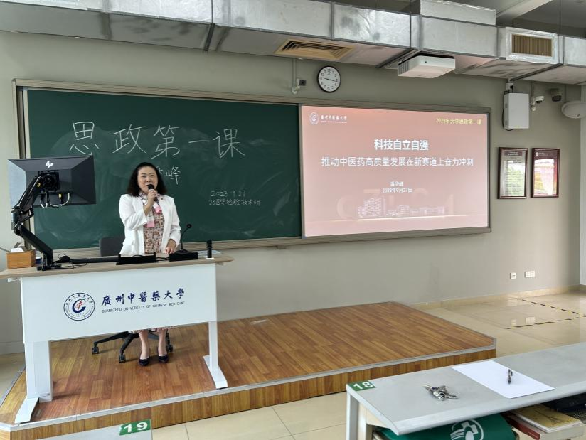 9月27日上午,学校党委常委、副校长潘华峰以“科技自立自强 推动中医药高质量发展在新赛道上奋力冲刺”为题在大学城校区B408教室为第二临床医学院2023级医学检验技术专业上新学期“思政第一课”。