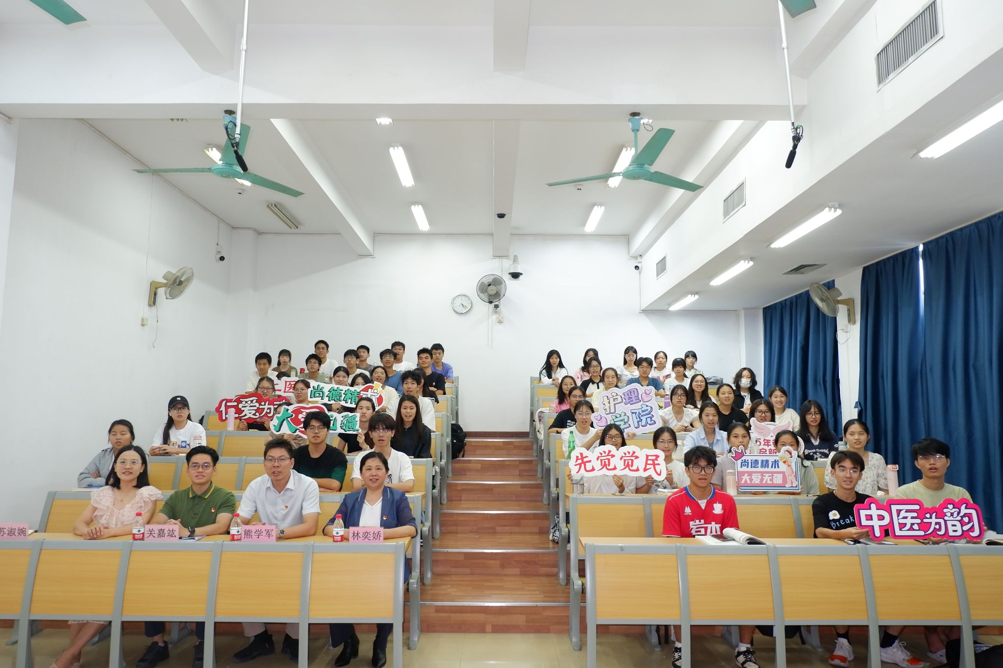 林奕娇对同学们提出了四点期望:一是要坚定理想信念,把个人的理想追求融入党和国家事业之中,共同书写新时代的辉煌篇章;二是要练就过硬本领,在校期间踏踏实实学习,努力成为堪当民族复兴重任的新时代广中医人;三是要敢于担当责任,主动到祖国和人民群众最需要的地方去接受成长淬炼,实现人生价值;四是要坚守诚信底线,从大学阶段开始强化廉洁自律意识,自觉遵规守纪。