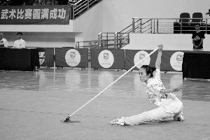 刘艳君在专业女子枪术比赛中表现突出。