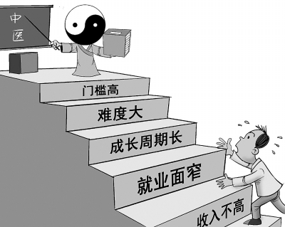 由此,中医院校毕业生就业面之狭窄,可想而知。"一些中医专业学生改换门庭转学西医,甚至彻底转行,也就不难理解了。"李萍说。