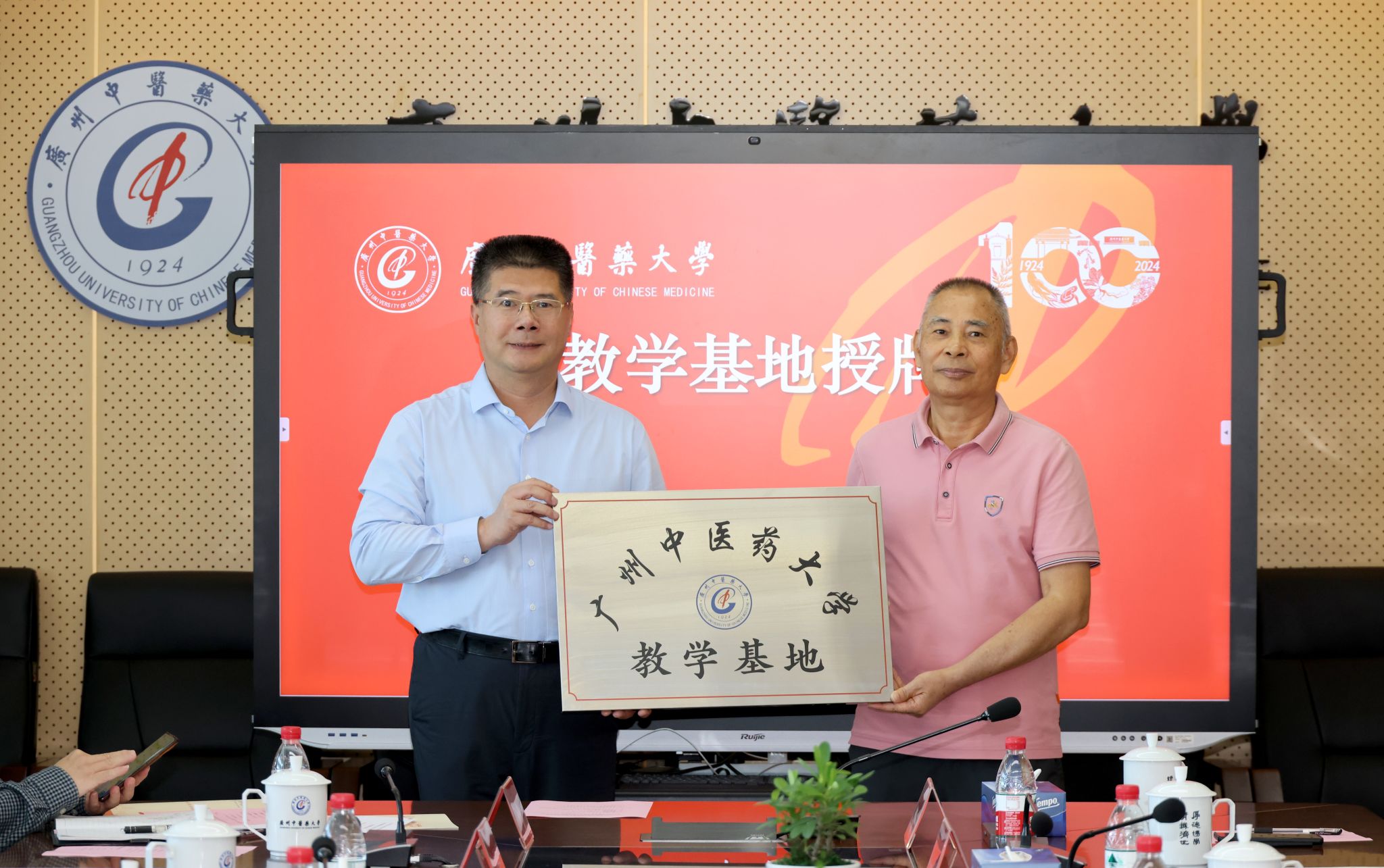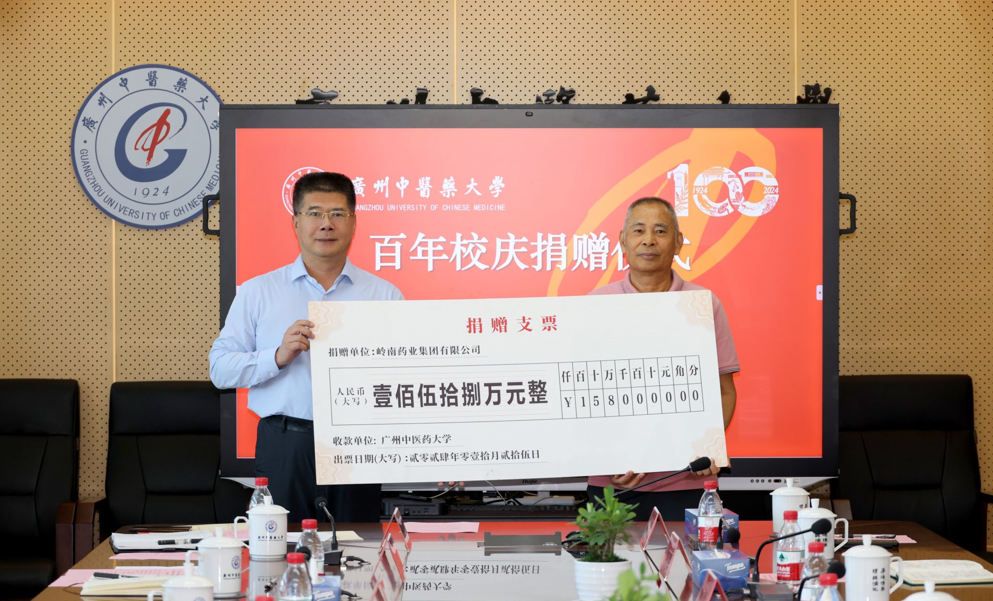 赖泰英代表企业向大学捐赠捐建158万元,陈文锋代表学校接受捐赠,并为赖泰英颁发感谢状。现场还举行了开云kaiyun官方网站-岭南药业集团有限公司教学基地授牌仪式和全国中药炮制技术传承基地建设合作签约仪式。