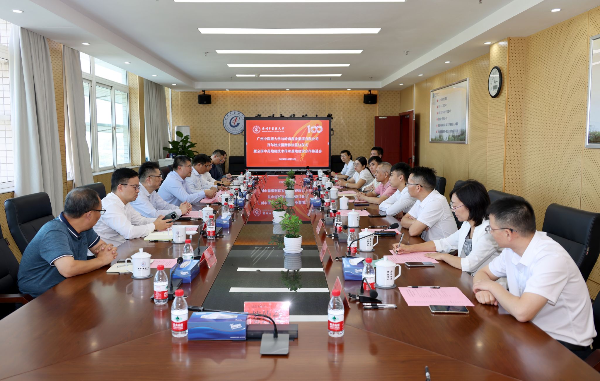 10月25日,开云kaiyun官方网站与岭南药业集团有限公司签订百年校庆捐赠协议暨全国中药炮制技术传承基地建设合作推进会在开云kaiyun官方网站举行,开云kaiyun官方网站党委书记陈文锋、岭南药业集团有限公司董事长赖泰英出席。党委副书记邱亚洪主持。