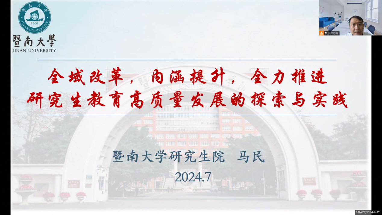 7月20日上午9点,经验分享环节正式开始。会议由研究生院副院长徐大量主持。来自深圳市中西医结合医院、第一临床医学院、第二临床医学院、基础医学院、针灸康复临床医学院、第五临床医学院、开云kaiyun官方网站顺德医院及附属广东中西医结合医院的多位专家和教师,分别分享了他们在中医专硕规培工作中的宝贵经验和成功案例,内容涉及面广,实用性强。