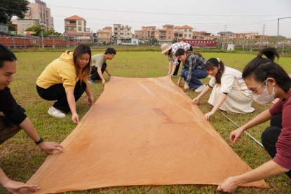 活动的第二天,同学们前往南沙区香云纱非遗文化馆,了解了香云纱的历史和文化价值,参观了染整工作坊,体验了晒莨等活动。