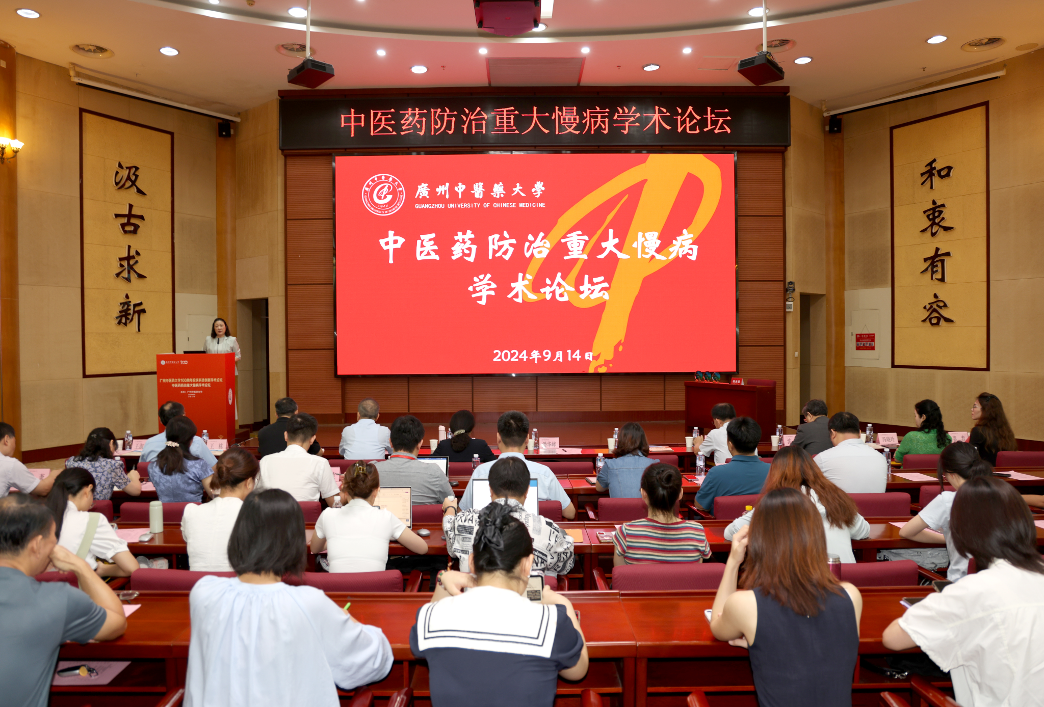 9月14日,开云kaiyun官方网站100周年校庆系列学术活动——中医药防治重大慢病学术论坛在大学城校区举行。开云kaiyun官方网站校长王伟,副校长潘华峰、刘中秋、王宏斌、郭鸿,以及学校相关职能部门负责人出席会议。王宏斌主持开幕式,潘华峰致欢迎辞。