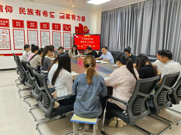 为进一步提升辅导员的工作效率,确保学院各项工作顺利开展,5月27日,文化教育学院在五区党员活动室召开辅导员工作会议。我院党总支书记展贤东、副院长于慧娟、学管办主任普俊以及全体辅导员参加此次会议。会议由党总支书记展贤东主持。