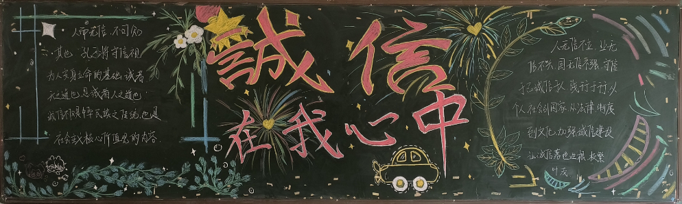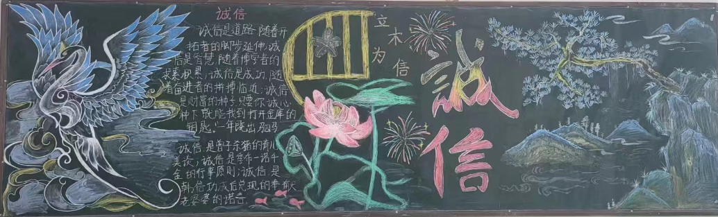 为深化学生诚信意识,厚植感恩情怀,艾弗森贝博ballbet官网5月28日组织开展“诚信教育,感恩资助” 主题黑板报创作活动,各班级以笔为媒,在黑板上绘出对诚信的坚守与对资助的感恩。增强学生对诚信价值与国家资助政策的理解与认同,在润物无声中筑牢立德树人根基,营造出崇信感恩、励志自强的浓郁校园文化氛围。