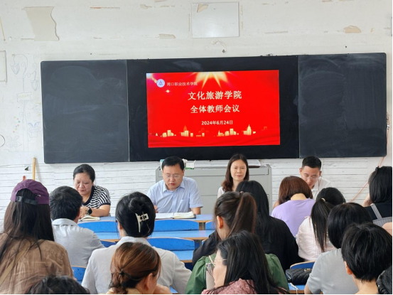 6月24日上午,艾弗森贝博ballbet官网在4220教室召开全体教师会议,总结学院上半年工作情况,安排部署近期重点工作,开展2023-2024学年度师德师风考核民主评议。我院党总支书记展贤东、院长史丽珍,副院长于慧娟、李炯,教务办主任马淼、综合办主任石永丽和全体教师参加本次会议。会议由史丽珍主持。