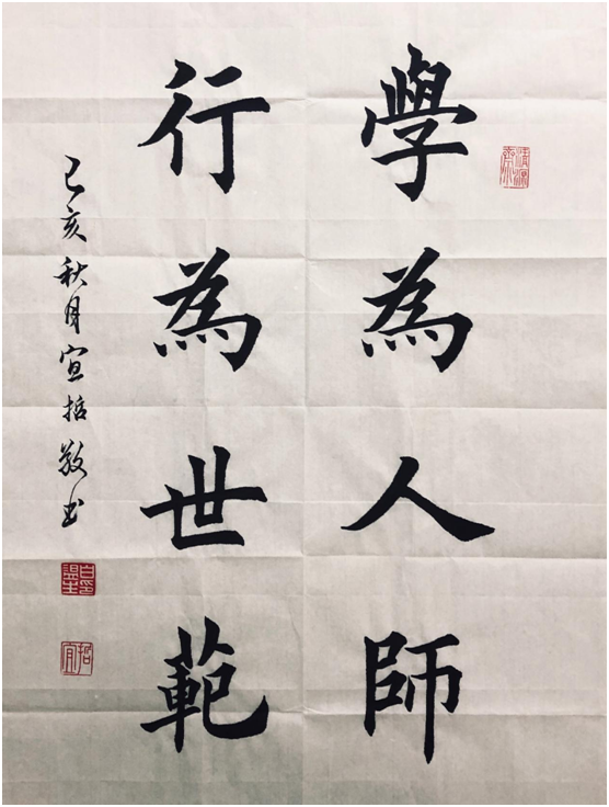 在比赛中大家尽情的挥毫泼墨,选手们都全神贯注于作品的创作中,一丝不苟,点横撇捺,工整美观,尽力表现出自己的最高水平,形成比赛中亮丽的风景线。纸上展现出的不只是一个个工整的字,更展现出的是他们深厚的书写功底。随着时间流逝,参赛选手纷纷完成了自己的创作。他们的作品中有刚正不阿的楷书,有古色古香的隶书,有潇洒飘逸的行书,连空气中都泛着一股淡淡的墨香,让我们深刻感受到中华传统文化的魅力。