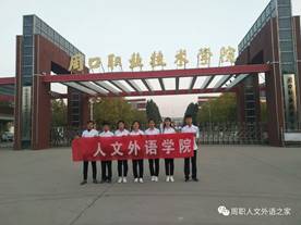 2018年国庆节期间,我院志愿者积极响应周口市委市政府的号召,在团市委和周职院团委的领导下,为助力“五城联创、百城提质”,我院团总支积极动员组织了17名大学生志愿者参与,在周口博物馆、森林公园、引黄 调蓄工程、关帝庙等七个观摩点进行志愿服务。