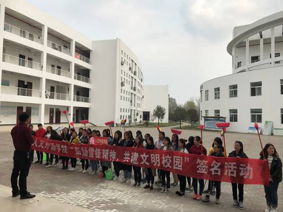 人文外语学院严格按照周职院团委“向雷锋同志学习”的文件精神,积极发动全院学生立即行动起来,于3月14日在校内国旗台下举行“践行雷锋精神、共创文明校园”千名大学生签名活动。