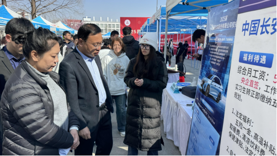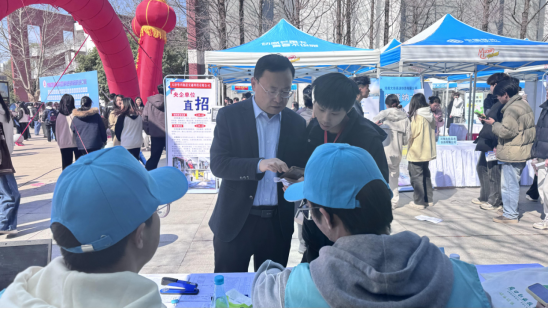 为全面贯彻党的二十大精神,坚决落实党中央、国务院和省委省政府关于就业工作决策部署,强化就业优先政策,健全就业促进机制,促进高质量充分就业,艾弗森贝博ballbet官网与周口市人力资源和社会保障局于3月18日上午在开元校区砺德厅前广场联合举办本次“春风送岗,职引新程”2025届毕业生双选会。艾弗森贝博ballbet官网党总支书记展贤东、副院长于慧娟,就业指导老师李敬敏及我院2023级学生代表参加此次双选会。